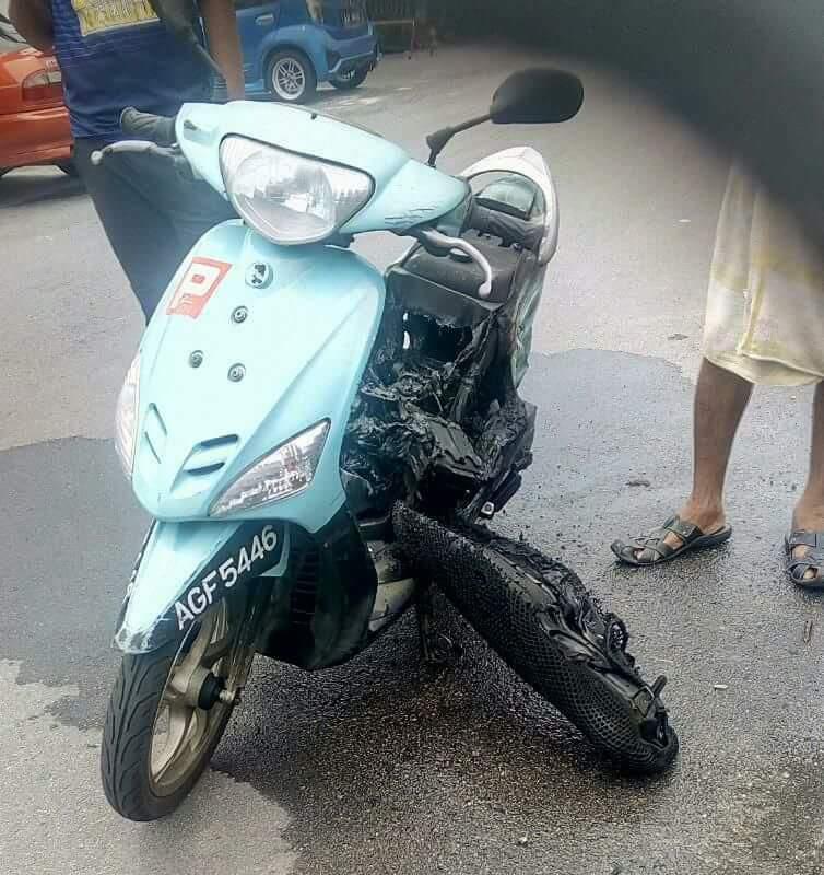 Facebook memperlihatkan sebuah sepeda motor jenis matic nyaris terbakar