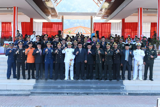 Sukabumi, nusantarabicara.co - Bertempat di Lapangan Cangehgar Pelabuhan Ratu 5 Oktober 2019 telah dilaksanakan Upacara Peringatan HUT TNI ke-74.Kegiatan tersebut dihadiri seluruh komponen Masyarakat Kabupaten Sukabumi baik TNI AD,AL AU Dan Polri Serra Muspida dan warga Masyarakat Kabupaten Sukabumi