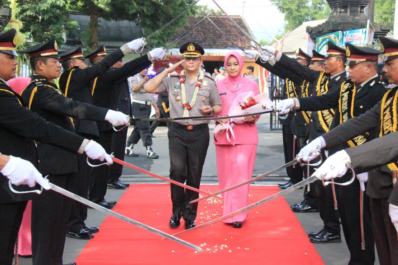 Bondowoso, nusantarabicara.co Jajaran anggota Polres Bondowoso Polda Jawa Timur melakukan penyambutan Kapolres Bondowoso AKBP Erick Frendriz dengan tradisi upacara pedang pora dan farewell parade kepada Kapolres Bondowoso sebelumnya AKBP Febriansyah.