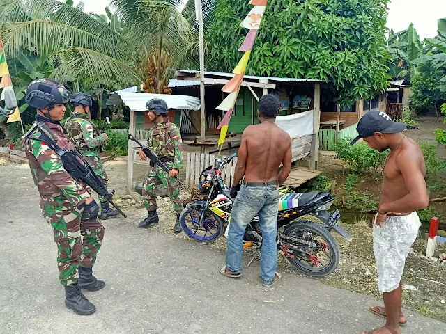 Papua, nusantarabicara.co - Satgas Yonif Raider 300/Bjw, Pos Yamara yang di pimpin oleh Sertu Yudi Sopandi beserta 6 Orang anggota bertujuan mencegah peredaran benda-benda terlarang kemungkinan akan melintas yang melewati didepan jalan Pos Yamara di Kampung Yamara, Distrik Mannem.