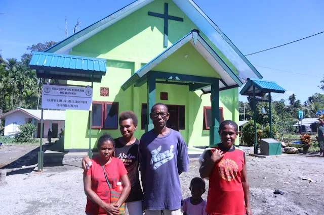 “Mengingat sebelumnya kampung kami belum memiliki gereja permanen, hari ini (14/04) berkat bantuan dari bapak-bapak TNI, kami telah memiliki gereja dengan bangunan permanen,”ucapnya.
