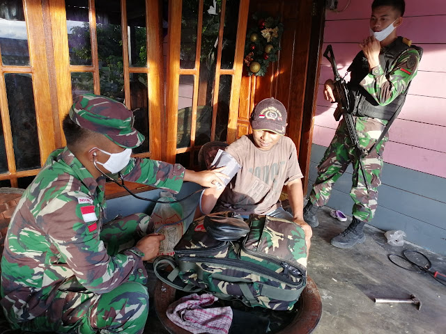 Selain itu personel pos Arso 13 juga memberikan pelayanan kesehatan gratis kepada masyarakat papua dengan mendatangi langsung dari rumah ke rumah menanyakan langsung keluhan yang di alami oleh masyarakat.