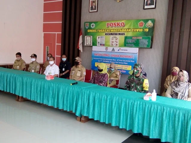 Bantuan tersebut secara simbolis diberikan kepada Ketua TP PKK Kabupaten Cilacap Hj. Teti Rohatiningsih S.Sos yang selanjutnya untuk dibagikan kepada warga yang ada di 10 desa di wilayah Kecamatan Maos. Kegiatan tersebut dihadiri Camat Maos Bintang Dwi Cahyono, Danramil 07/Maos Kapten Inf Joko Yunanto, Kapolsek Maos Iptu Iwan Efendi SH. MM, Kepala Upt Puskesmas Maos dr. Sri Utami, Kepala TBBM Maos Sonny, Ketua Ranting GP Ansor Maos Heriyanto dan para pejabat Dinas Instansi se Kecamatan Maos.