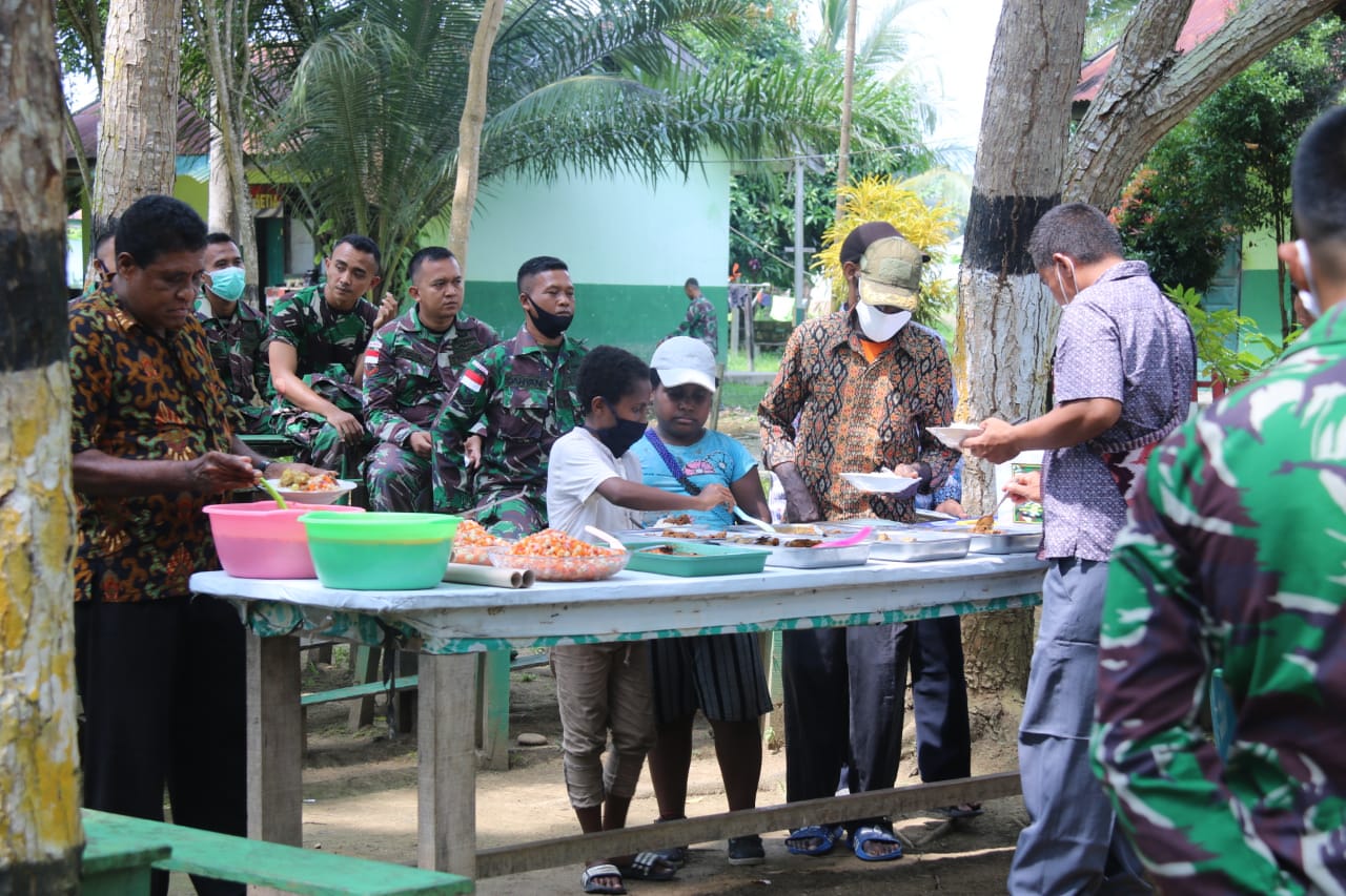 Papua, nusantarabicara.co - Satgas Pamtas Yonif Raider 300/Bjw, Pos Kotis di pimpin Wadan Satgas Kapten Inf Kenedi Tinambunan laksanakan acara perpisahan dengan warga binaan di Pos Kotis Satgas Raider 300 bertempat di Kampung Wonorejo, Distrik Mannem. Sabtu (18/7/2020)