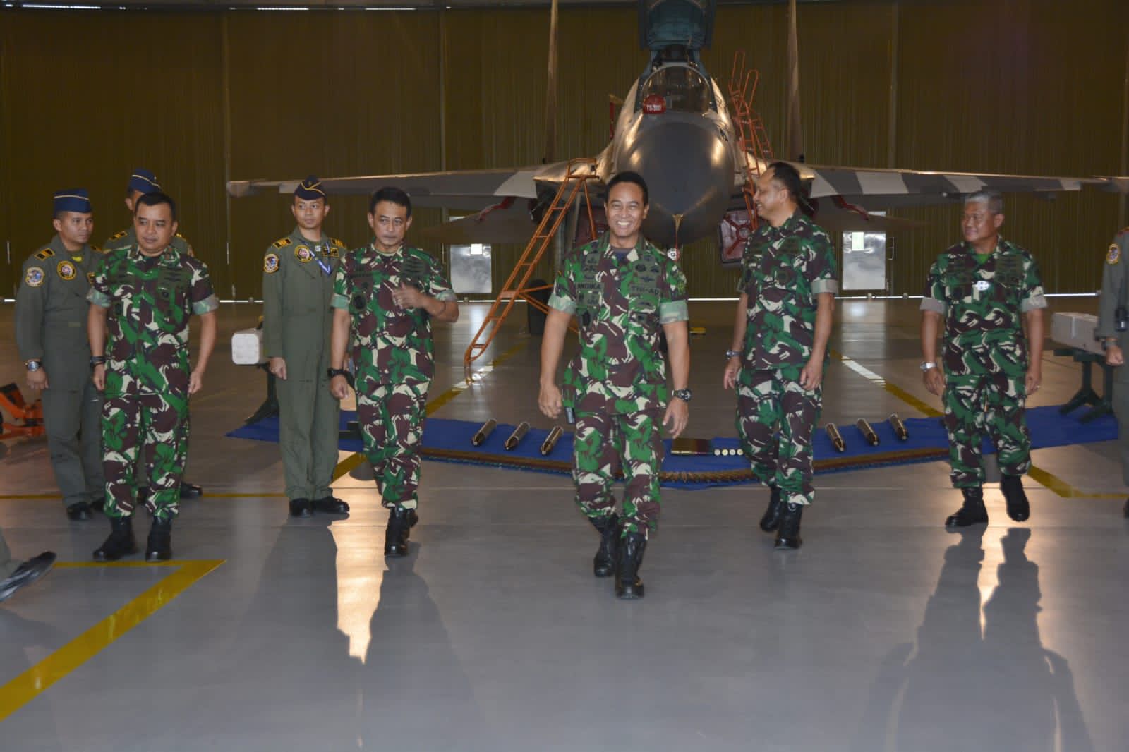 Usai menerima Paparan, Panglima TNI dan Kasau, beserta rombongan menuju shelter Skadron Udara 14, guna meninjau secara langsung kesiapsiagaan para penerbang dan alutsista pesawat tempur yang dioperasionalkan di Lanud Iswahjudi.