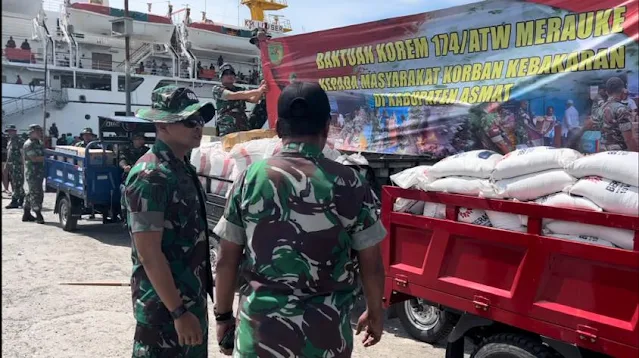 Dalam rangka membantu meringankan beban korban kebakaran, Komandan Korem 174/Anim Ti Waninggap (Danrem 174/ATW) Brigjen TNI Reza Pahlevi mengirimkan bantuan logistik ke Agats. Bantuan tersebut dikirimkan menggunakan KM Leuser dan telah sandar di Pelabuhan Agats, Kab. Asmat pada Rabu 26 Oktober 2022 pukul 12.00 WIT.